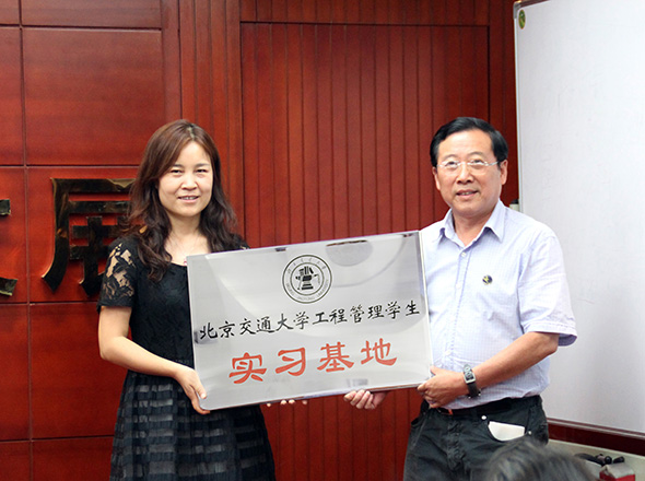 2014年5月29日下午兩點,在公司舉行了北京交通大學(xué)工程管理學(xué)生實習基地掛牌儀式,公司董事長周和生先生以及北京交通大學(xué)工程管理學(xué)院郭教授出席了此次儀式并發(fā)表了講話,并由公司總經(jīng)理李飛對學(xué)生們進行講解和演示“全過程投資管理及審計系統(tǒng)平臺”操作介紹,得到了學(xué)生們的一致認可。
