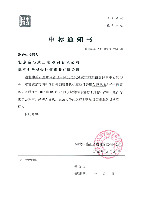 北京金馬威工程咨詢有限公司中標(biāo)“武漢市PPP項(xiàng)目咨詢服務(wù)機(jī)構(gòu)庫(kù)項(xiàng)目”