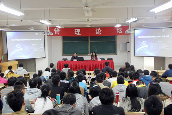 儀式結(jié)束后,周和生董事長為學(xué)院師生們作了題為“建設(shè)項(xiàng)目全過程投資管理及審計(jì)系統(tǒng)介紹”的學(xué)術(shù)講座。